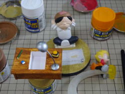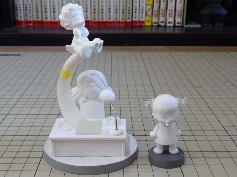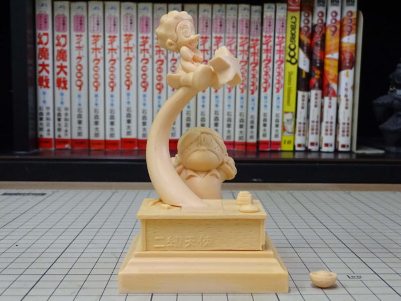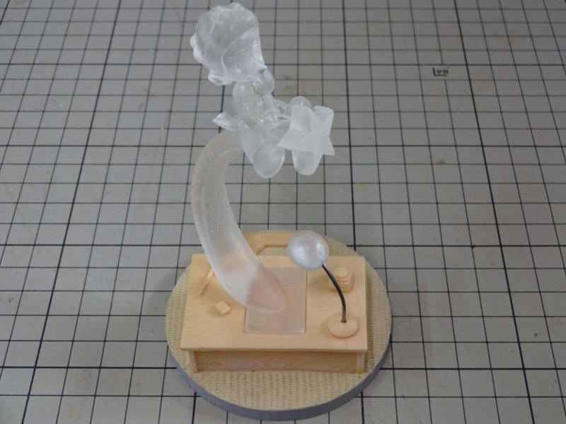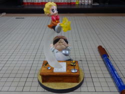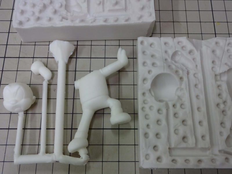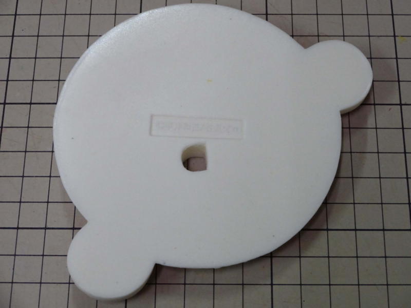 台座の原型を仕上げてシリコンで型を取り、1個抜いてみました。 画像ではわかりませんが版権元の©が入ってます。 |