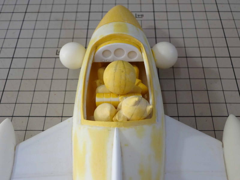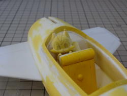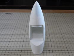 きれいに曲面が出たところでコクピットをくり抜き、パテ処理を繰り返してます。 |