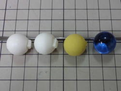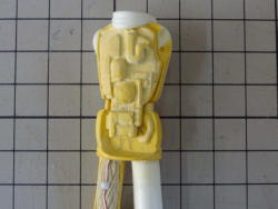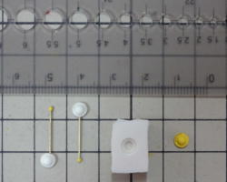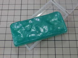 「おゆまる」をお湯につけます。柔らかくなったら取り出し、水分を丁寧に取ってから原型に押し付け、冷蔵庫で冷やして固くなったら脱型。数分で「おゆまる」製の雌型の完成です。 細かいモールドの複製には不向きですが、 単純な形やレリーフ状のもので精度が必要で無いものなら十分使えます。 |
