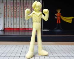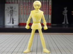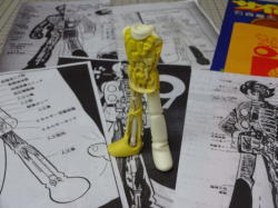 身長はロビンと同じ1600oに設定しました。1/15スケールで107o位です。誕生編のジョーと『幻魔大戦』の丈をポリパテ複製して素体に使ってます。 ポーズはサンデーコミックスの表紙と構造図を合わせた感じです。 |