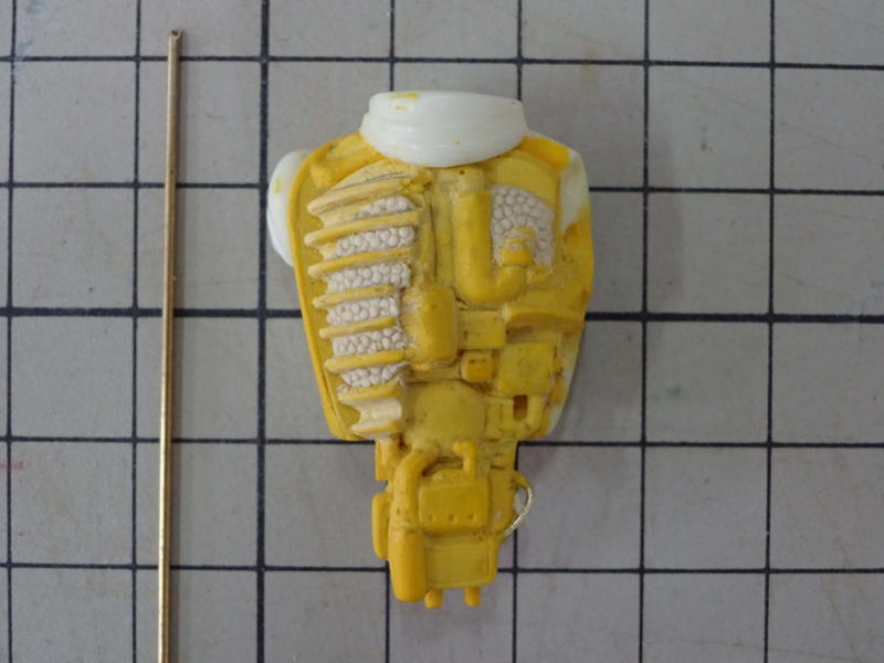 針金とポリパテで制作。メカパーツの中では最速で出来ましたが、ボディラインからはみ出てしまいました。作り直してます。 |