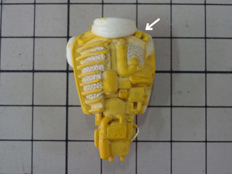 原型を反転させたシリコン型の凹凸を見て、手流しでは難しいかなと思いましたが、わりときれいに抜けました。 メカ部分に小さな気泡が出ましたが問題ないです。 |