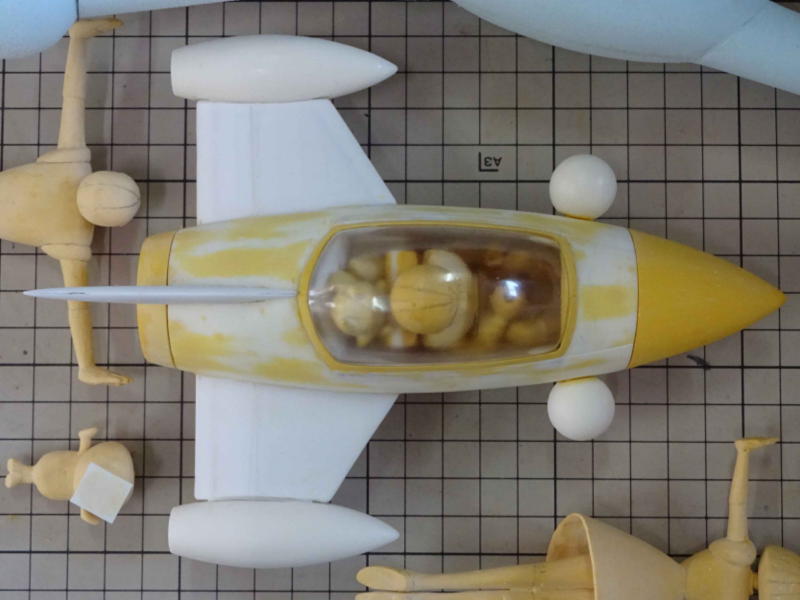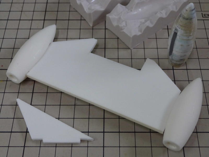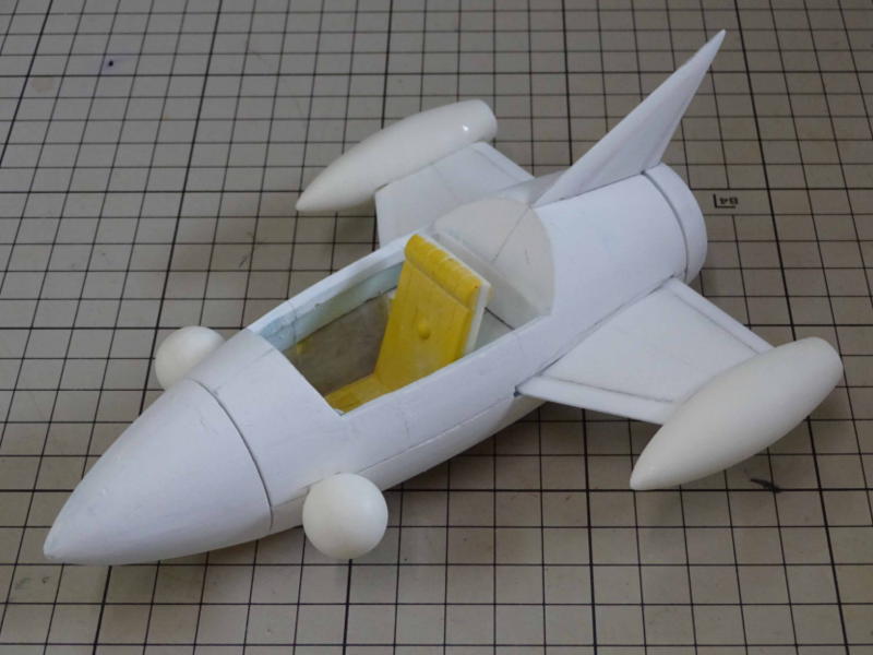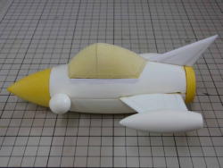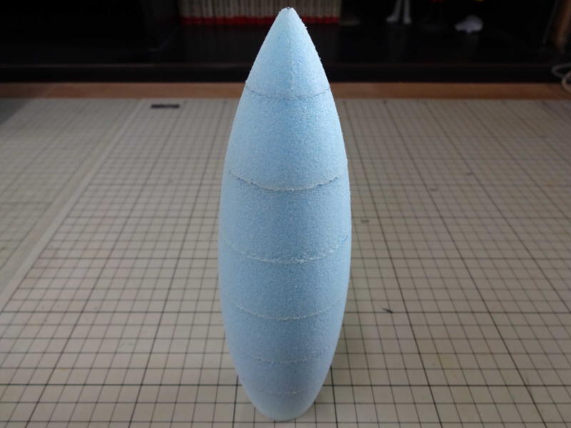 実物を全長2700oに設定。(垂直尾翼を含む) 1/15スケールで180oです。 輪切りにしたスタイロホームを重ねて成形してます。 |