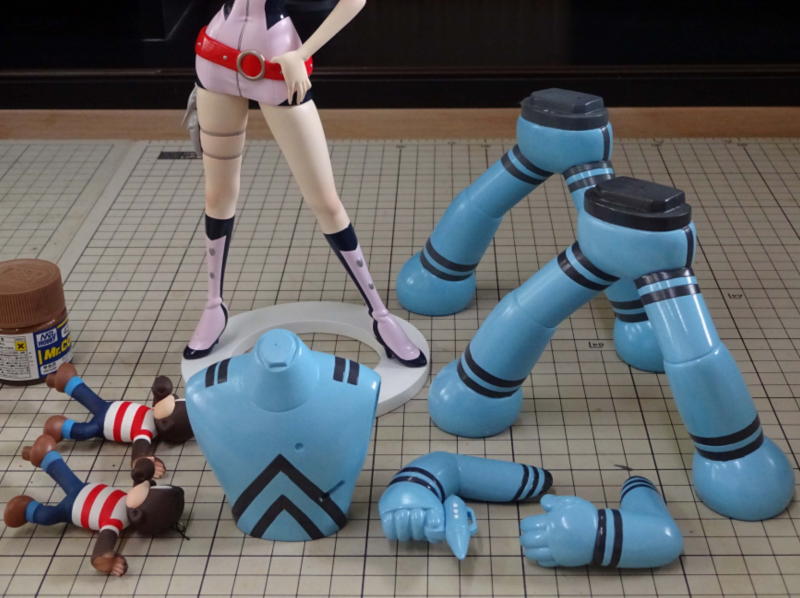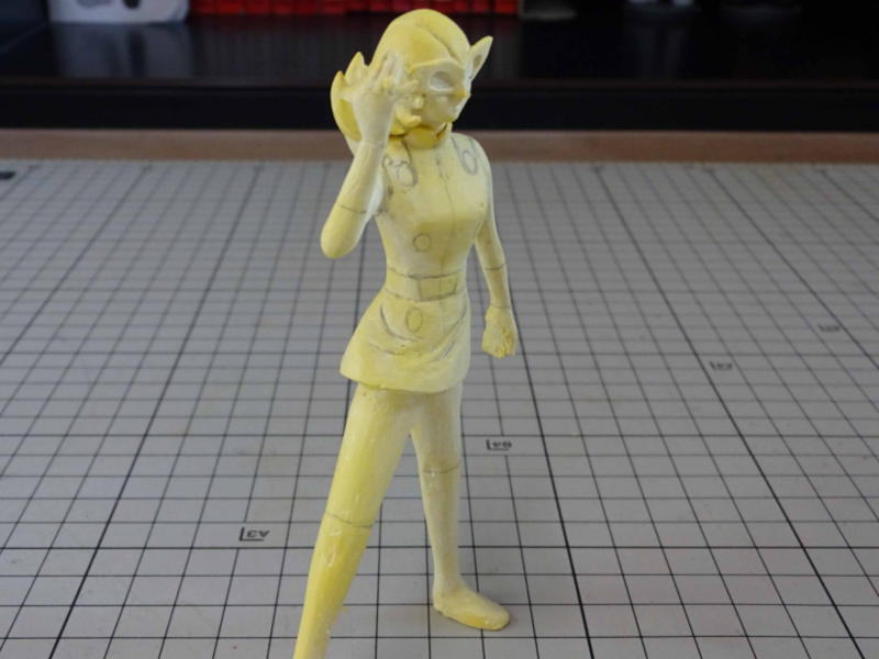 下地を整形して白サフを吹き、Mr.カラーとタミヤのエナメルで着色しました。 色味はイラストと実写のコスチュームを参考にしてます。 |