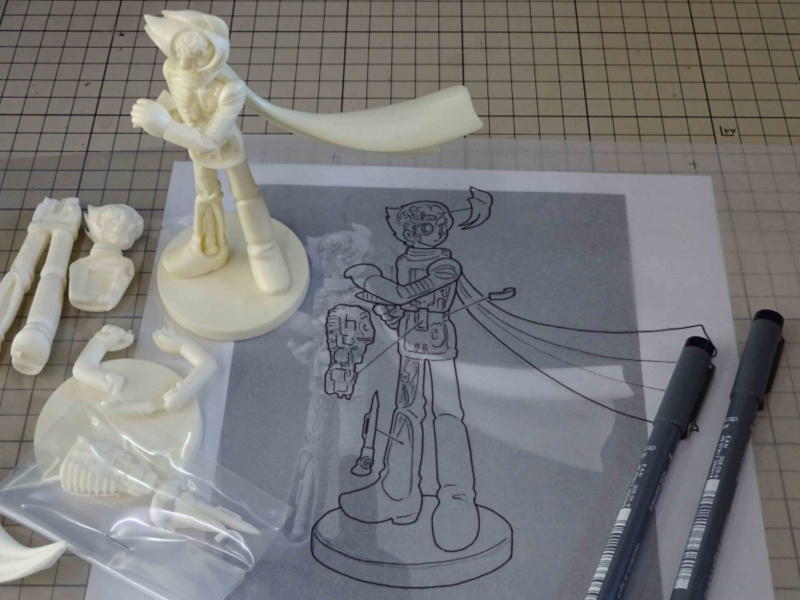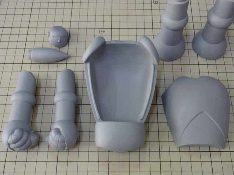 原型に色を塗って仕上げてもいいのですが、分割ラインをパテ埋め修正する必要があるので原型はそのままにレジン版を組んでいきます。 |