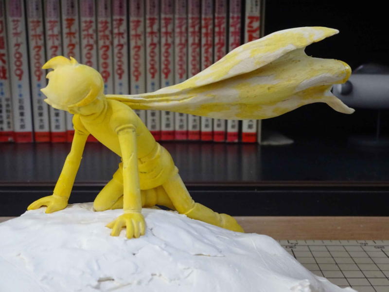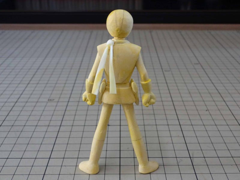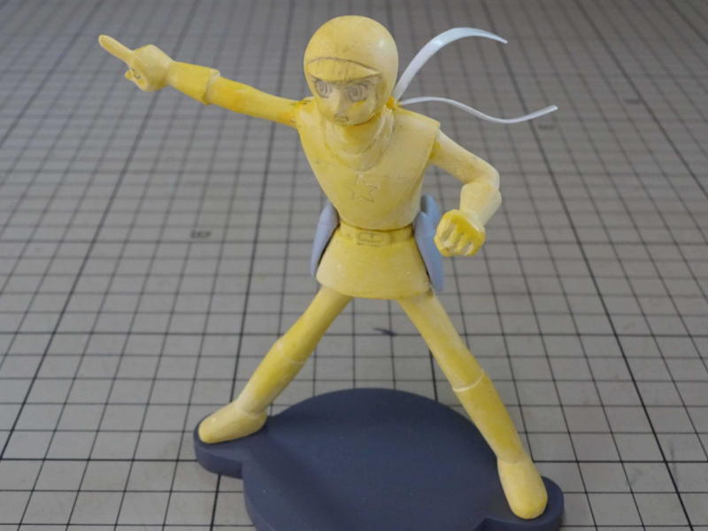 マフラーは前の2作よりカクカクした線で描かれているので、その辺りを再現しながらパテ盛りとヤスリがけで成形してます。 |