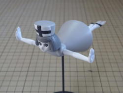 帽子に真ちゅう線とポリパテでフサを付けました。 噴射炎は足の裏から1本出しました。 サフを吹いて表面整形中です。 |