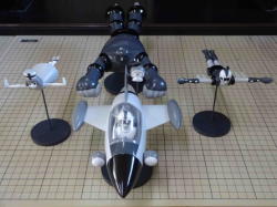 原型と一部レジンパーツを組んで色を塗りましたが、組んで塗ってるうちに修正箇所が多々出てきました。 まだまだ作業はつづきそうですが、とりあえずレインボー戦隊完成です。 |