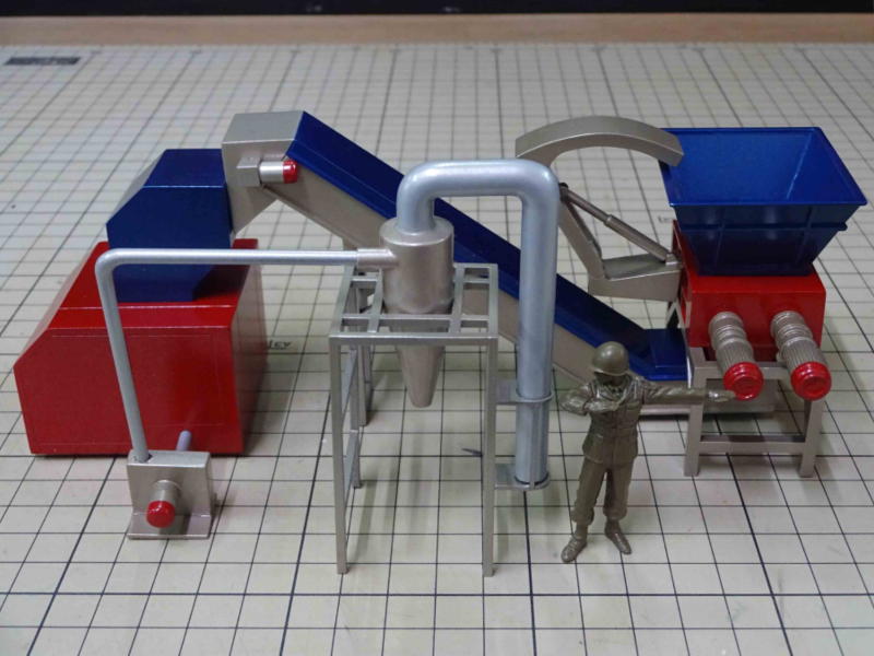 真ん中手前のパイプ状のがサイクロンという機械。たぶん遠心力でなんかするんでしょうね。 各色を吹き付け塗装して完成しました。 |
