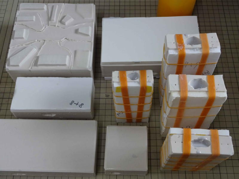 シリコンシーラント+コーンスターチで石粉粘土を取りして、シェルキャストに置き換えました。 シェルキャスト版は今のところ収縮、変形は見られず良好です。 |