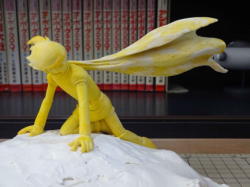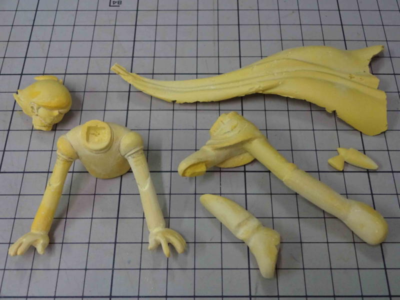 ペガサスの原型のパーツの厚みをなるべく均一に加工して型を取り、1セット抜いてみました。前回よりレジンの収縮による段差は少なくなったようです。良しとしましょう! ロピンとベルと教授のシリコン型も完成しました。 |