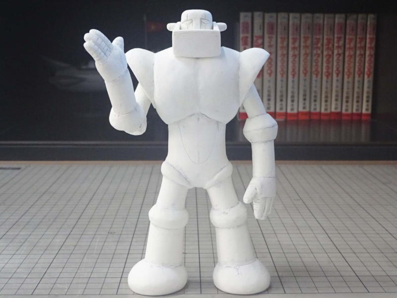 身長を2500oに設定。1/15スケールで全高167o位。 石紛粘土製です。 年末年始はずっと粘土をこねてました。 |