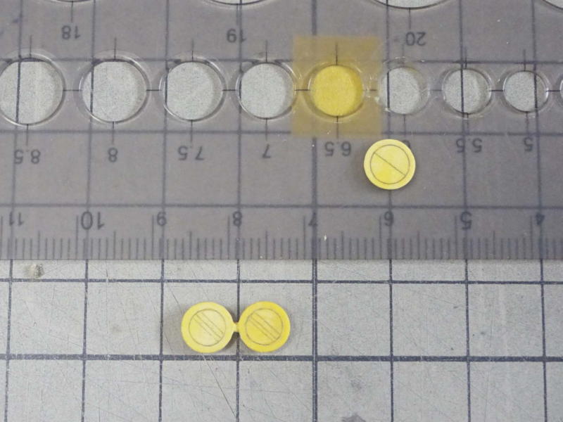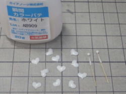 ポンチで円形に抜いたプラ板を貼り付け、ポリパテを盛って厚みを付けました。 |