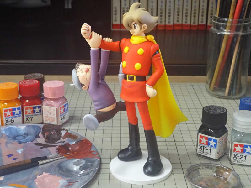 @館長さん原型の「石ノ森章太郎先生とジョー」完成! ホームデスクより石森プロのデスクの上が似合いそうな作品。楽しく組み立て色塗りできました。 |