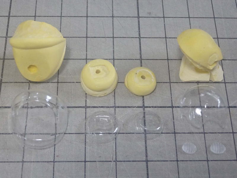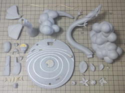 透明パーツはバキュームホーム版を採用。塩ビ板は0.5o厚に変更しました。 レジンパーツが台座を入れて16パーツ。 透明塩ビパーツが4パーツ。全20パーツです。 |