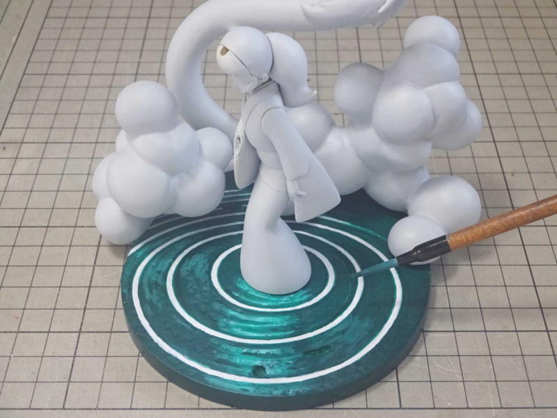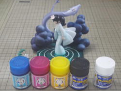 『マンガ家入門』に描かれてる龍神沼のイラストは4色オフセットで印刷されてますが、 模型の方は4色にホワイトを加えて5色が基本です。 |
