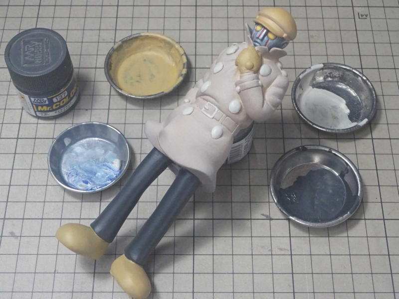 サフを吹いて磨いてます。作業の6割はモクモクの整形です。 |