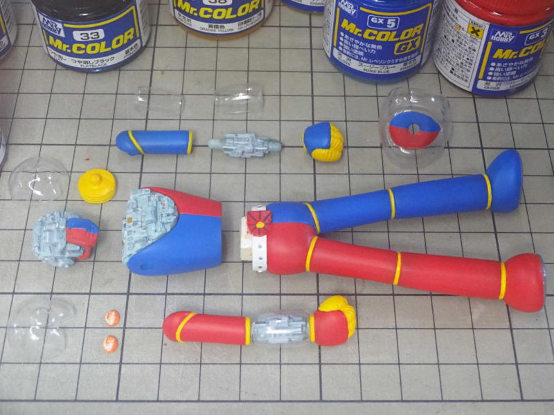 メカと透明パーツを埋め込むパーツは加工がしやすいポリパテに置き換え、加工の必要のないパーツはレジンに置き換えました。 上腕のメカは01の前腕メカを加工して再利用してます。 |
