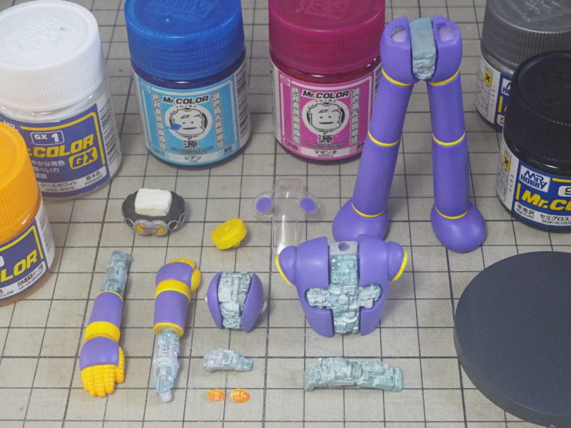 ボディの色は原作コミックのモノクロのトーンで判断すると赤の単色になりますが、赤と青を混ぜて紫にしてみました。←画像では青みが強いですが実物はもっとパープルです。 |